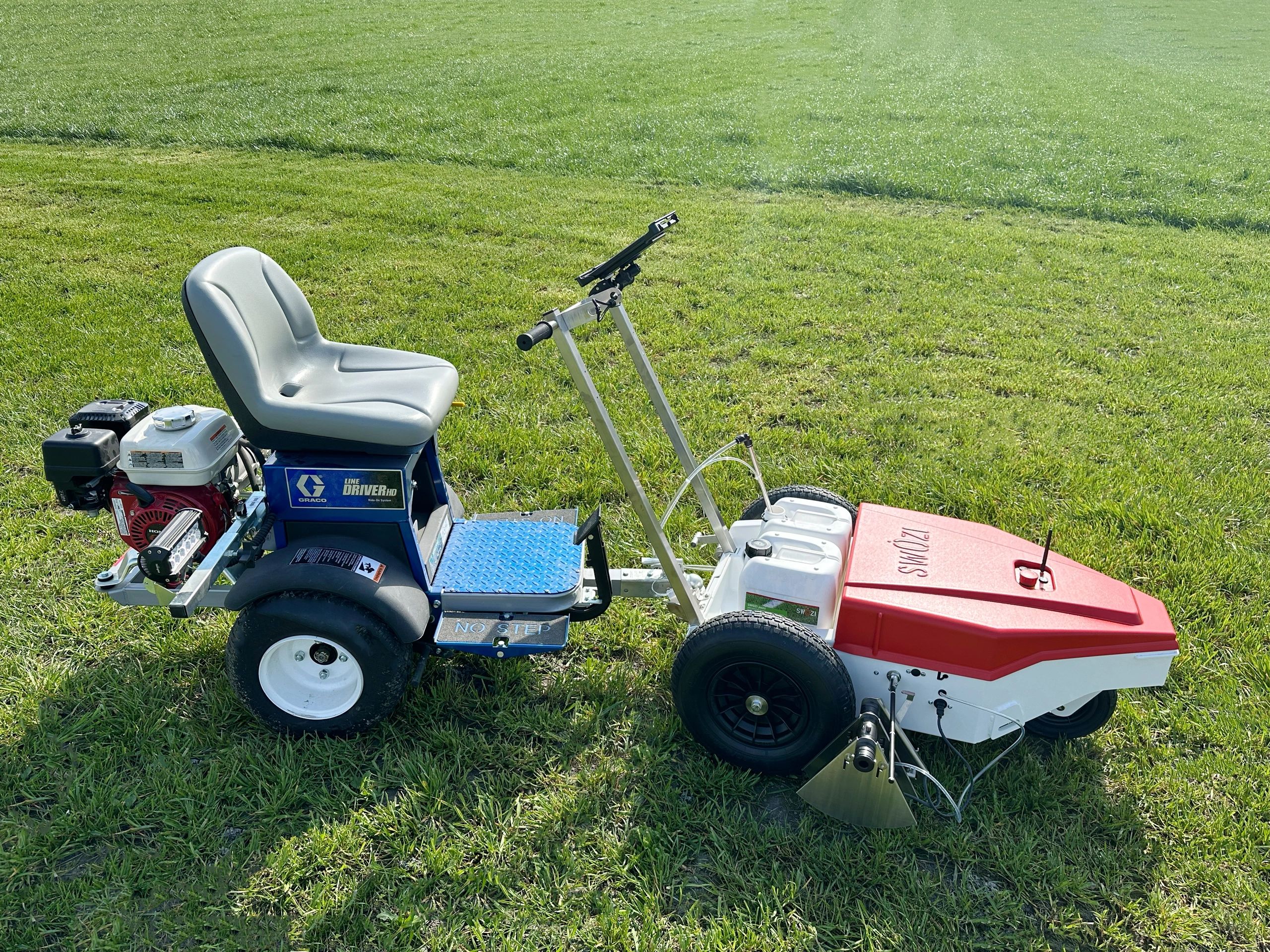 The SWOZI ride-on marker is semi-autonomous and ideal for operators that don’t want to walk and push the machine or need to service multiple sports fields in “one go”.